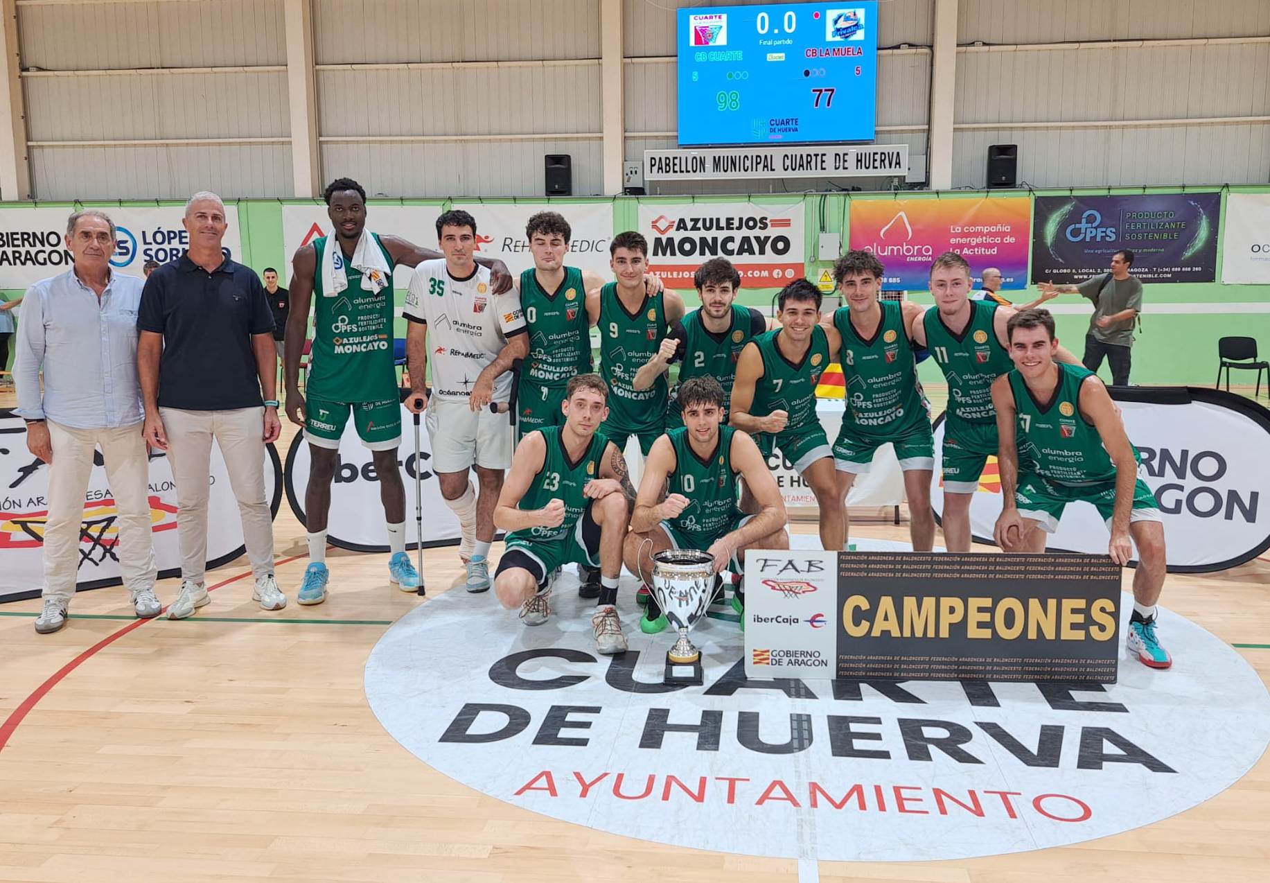 21/09/25 El CB Cuarte de Huerva conquistó el título de campeón de la Copa de Aragón de Tercera FEB Trofeo Ibercaja tras superar en semifinales al Letra Corpórea UBB (79-61) y en la final al Frivalca La Muela (98-77).