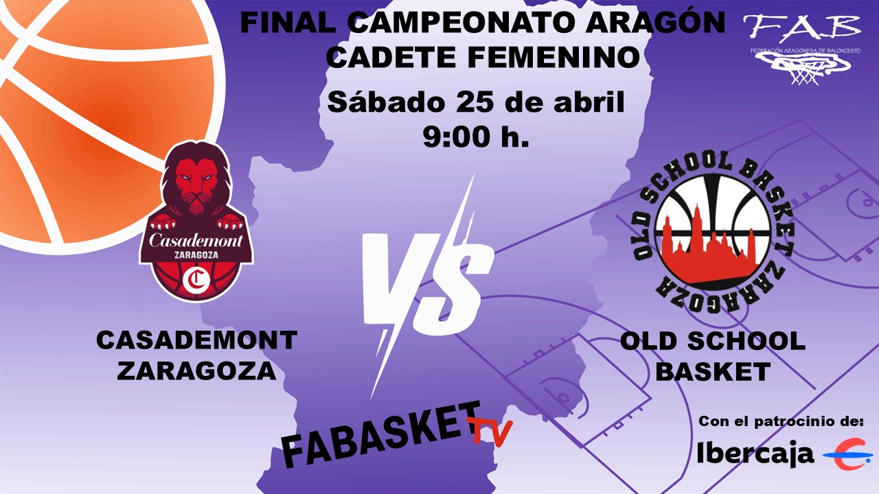 14/04/26 Fabasket TV retransmitirá en directo las finales de los Campeonatos de Aragón Cadete Masculino y Femenino, que se jugarán el sábado, 25 de abril, en el pabellón del Liceo Europa-Centro de Tecnificación FAB.