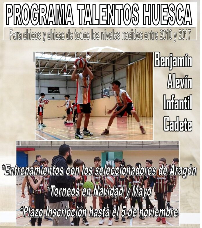30/09/25 La Delegación Oscense de Baloncesto convoca el plazo de inscripción para el Programa Talentos Huesca, que está dirigido a chicos y chicas de todos los niveles de las categorías Cadete, Infantil, Alevín y Benjamín, nacidos entre los años 2010 y 2017.