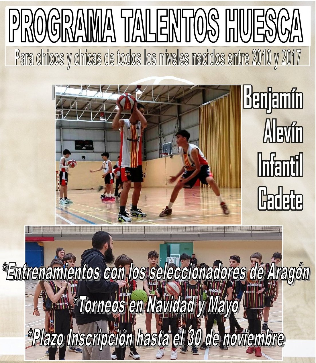 01/11/25 La Delegación Oscense de Baloncesto convoca el plazo de inscripción para el Programa Talentos Huesca, que está dirigido a chicos y chicas de todos los niveles de las categorías Cadete, Infantil, Alevín y Benjamín, nacidos entre los años 2010 y 2017.
