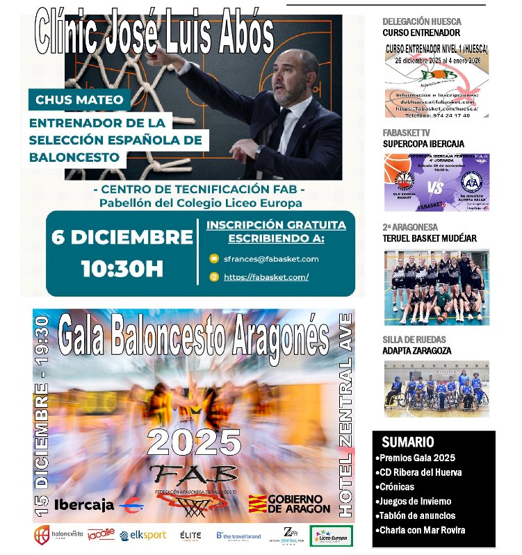 La Revista BASKETFAB es una publicación digital editada por la Federación Aragonesa de Baloncesto, con el patrocinio de Ibercaja, que recoge la actualidad semanal del baloncesto aragonés. Consulta las fechas de publicación de la temporada 2025/2026.